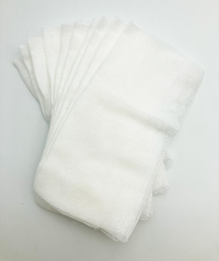 Pieza de gasa rectilínea, no esteril, de 15 hilos, cortada 50×50cm y plegada 10×20cm.
