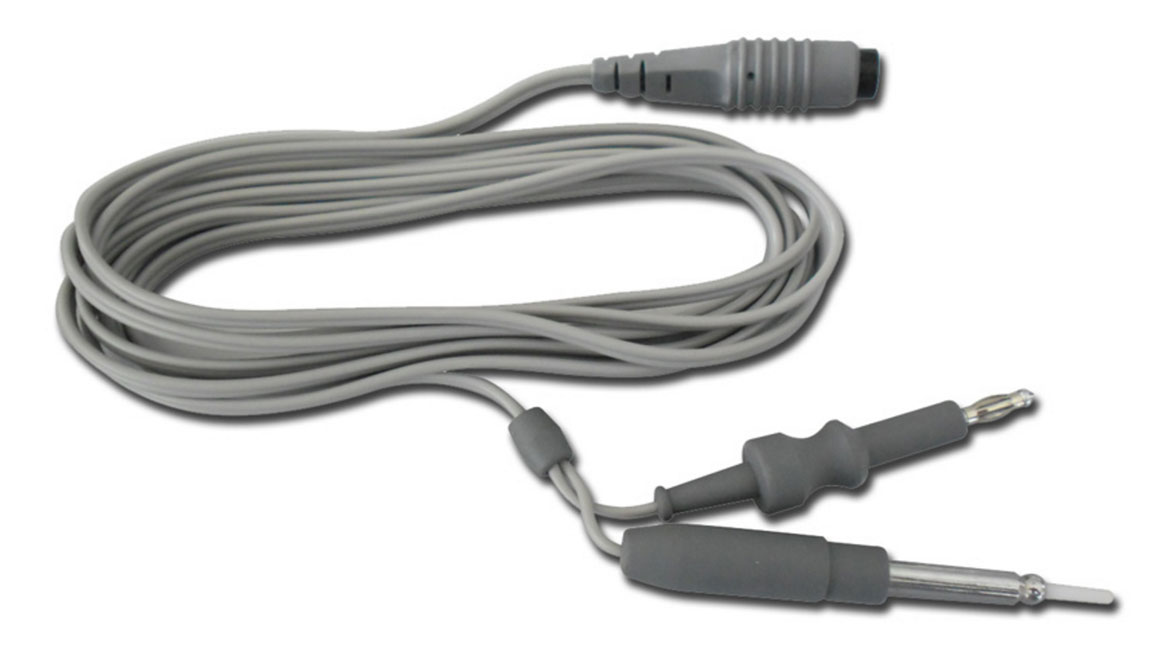 Cable bipolar de silicona de alta calidad y extremadamente flexible. 3 metros de largo y esterilizable en autoclave a 137 °C hasta un máximo de 70 veces.