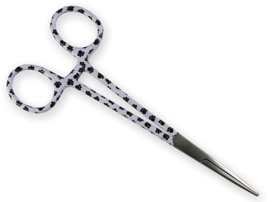 Pinza de acero con anillos para arterias. Fantasía huellas.