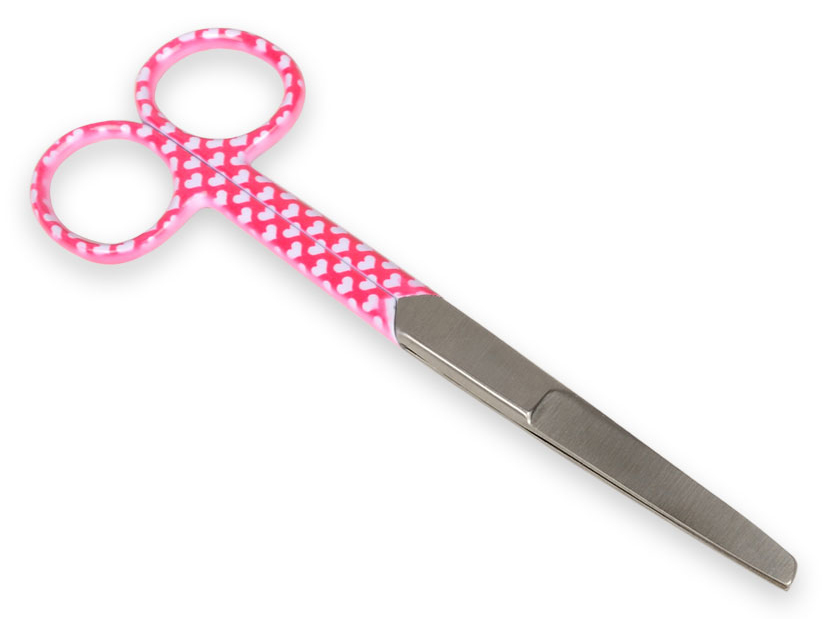 Tijeras rectas en acero con puntas alternas, fantasía corazones.