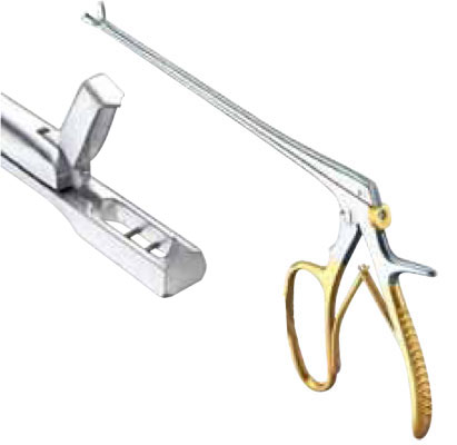 Pinza saca-bocados para biopsia Tischler C.T. recta y extralarga, con diente único en las mordazas superior e inferior.