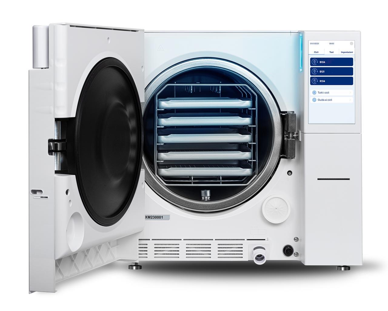 El generador de vapor instantáneo ofrece excelentes prestaciones en términos de rapidez, seguridad y esterilidad. Optimiza el consumo de agua calibrándolo en función de la carga y, en sinergia con las resistencias, ofrece un secado perfecto.