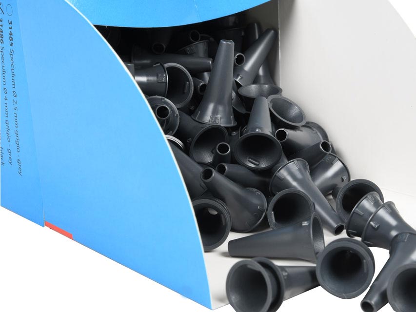 Mini espéculo desechable de 4 mm de diámetro en color gris.