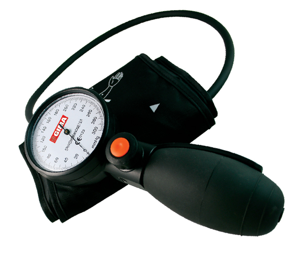 Tensiómetro aneroide profesional con amplio cuadrante Ø 65 mm y válvula de purga de aire botón que permite el desinflado gradual o inmediato.