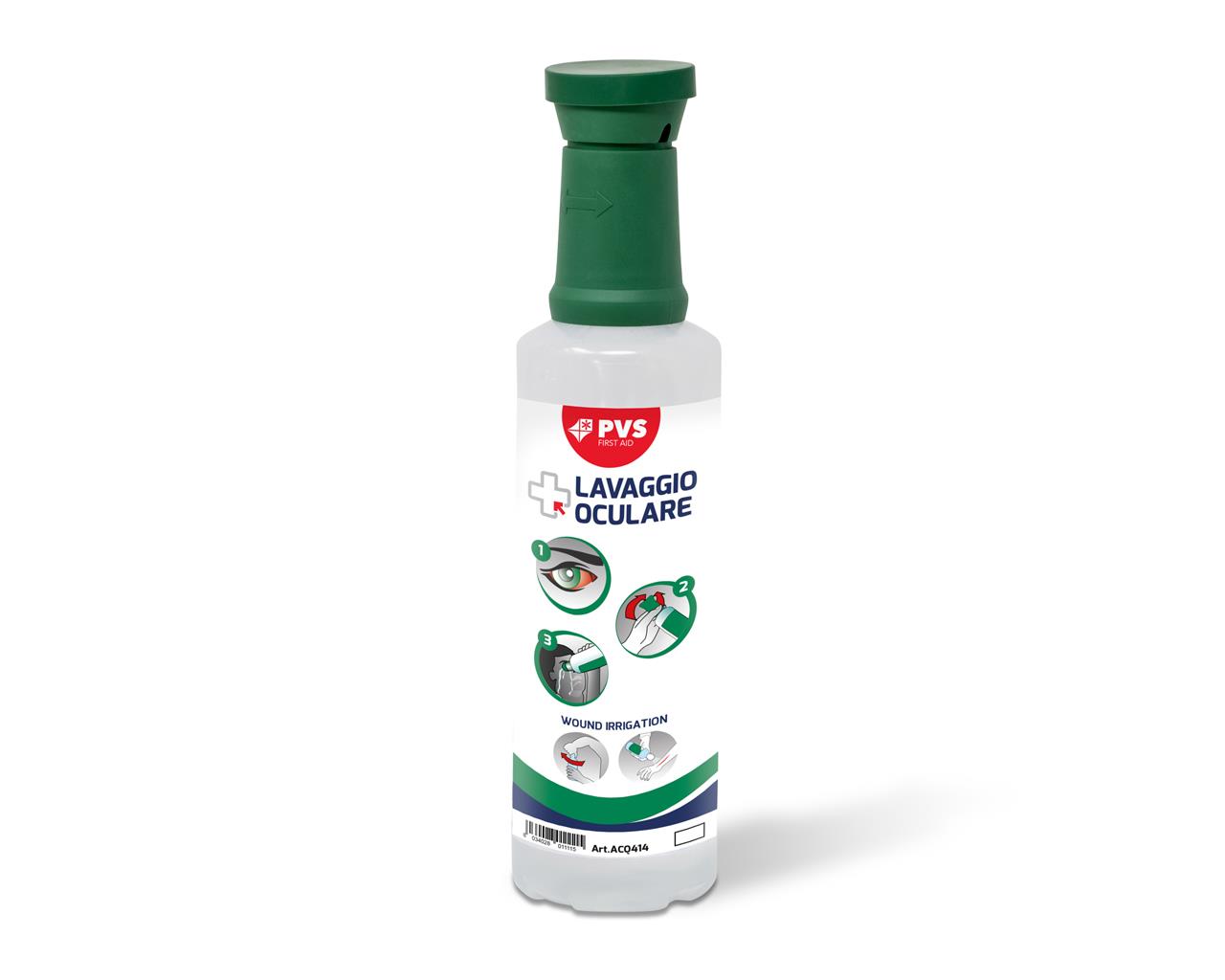 Indicado para primeros auxilios en empresas, laboratorios, departamentos hospitalarios, consultorios, talleres y uso doméstico. Puede emplearse como recambio para la estación de lavado ocular Drop (cód. 104536) o como solución de intervención rápida en los kits de primeros auxilios.