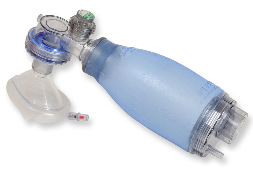 Resucitador para la reanimación de PVC desechable, no autoclavable. Se suministra sin válvula para evitar la super presión (40 cm H2O) y con mascarilla desechable, sin válvula con membrana antirreflujo y adaptador para la válvula PEEP. La mascarilla transparente adhiere perfectamente a la cara del paciente.