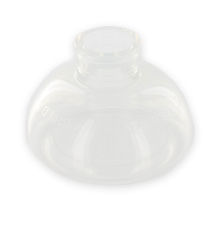 Máscara de silicona esterilizable en autoclave para niño (pequeño), completamente transparente para garantizar total visibilidad. Se puede utilizar con cualquier tipo de balón de reanimación manual o ventilador pulmonar.
