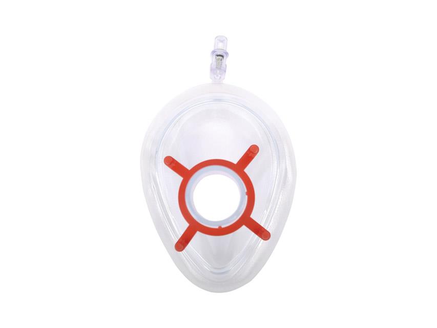 Máscara desechable monopaciente de calidad con conector para la insuflación del aíre.