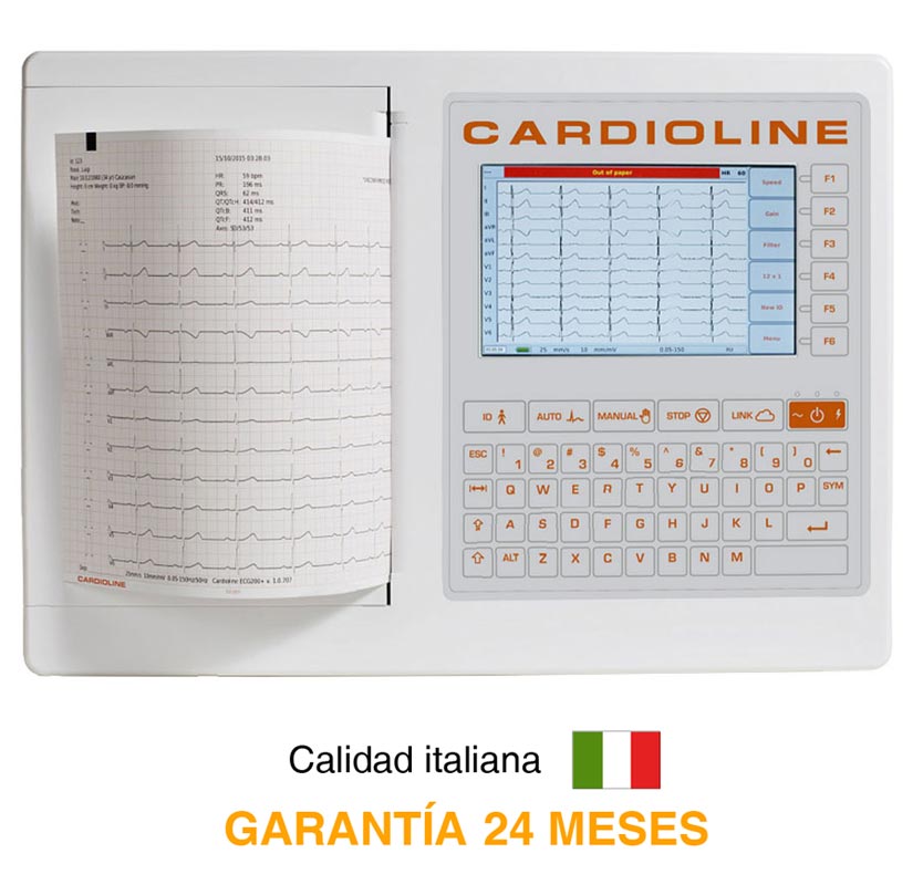 • Electrocardiógrafo Cardioline ECG200+ - 12 derivaciones y 12 canales de impresión