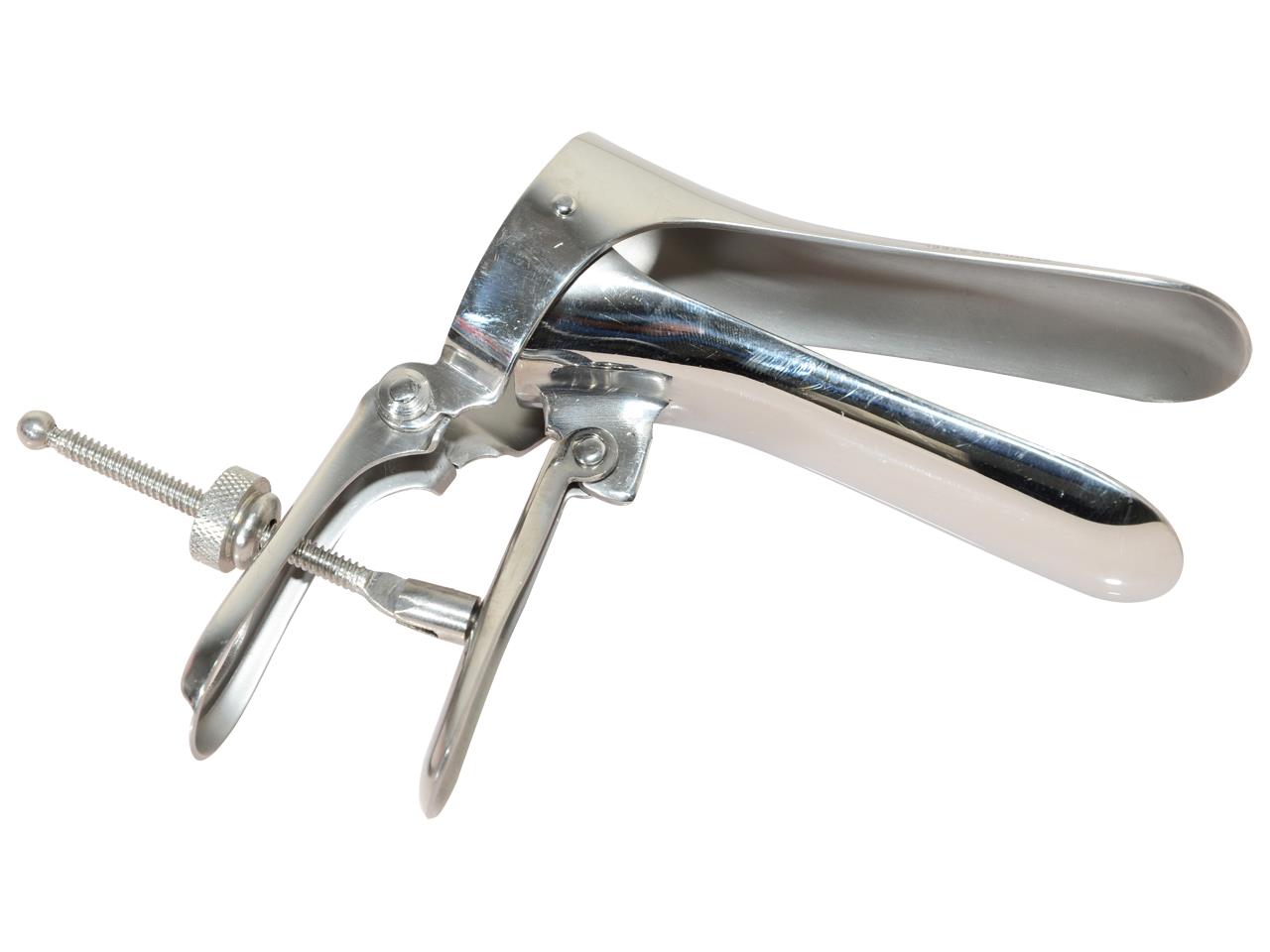 Espéculo vaginal con tornillo central, fabricado íntegramente en acero inoxidable 18/8 y con interior satinado.