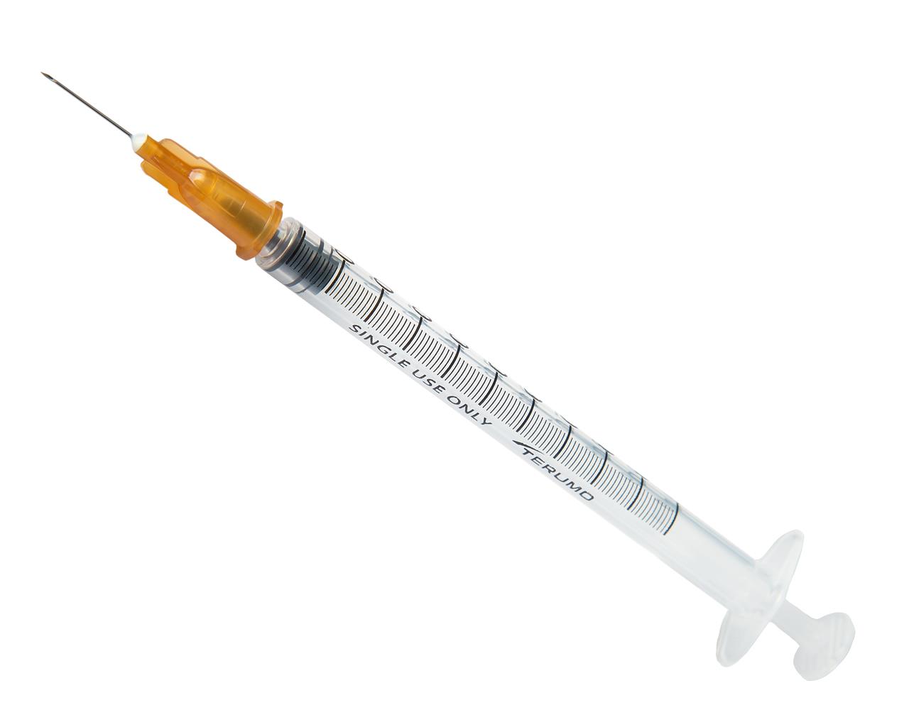 Jeringas desechables estériles Terumo, con aguja preconectada. Las jeringas están destinadas a la aspiración o inyección de sangre o fluidos en el cuerpo humano.