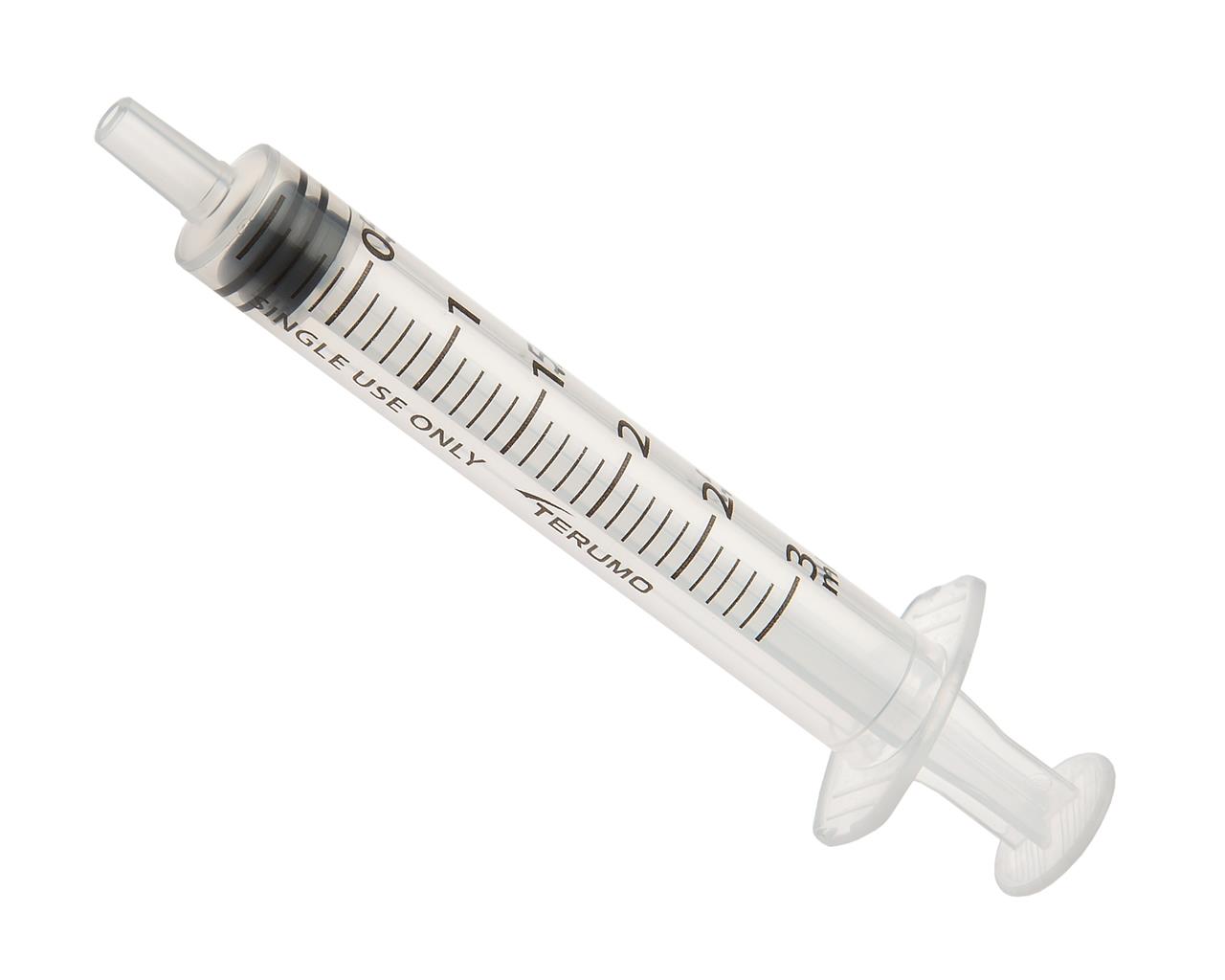 Jeringas desechables estériles Terumo, sin aguja. Las jeringas están destinadas a la inyección, aspiración o extracción de muestras de fluidos corporales o sangre.