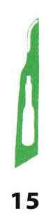 Hojas de bisturí de acero inox N° 15. Todas fabricadas según los requisitos BRITISH