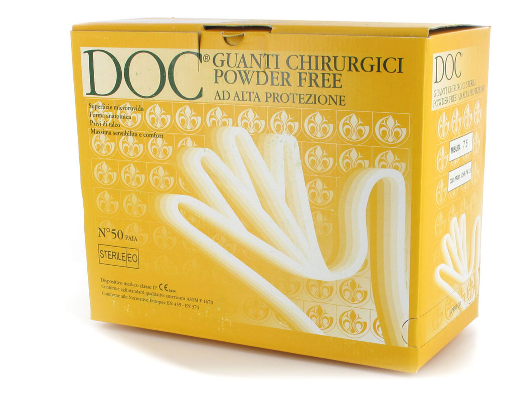 Guantes quirúrgicos estériles de látex sin polvo y con bajo contenido de proteínas de leche.