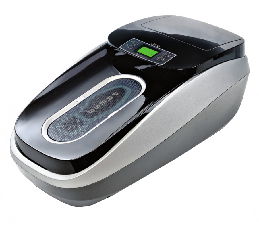 El dispositivo, elegante y tecnológico, único en su tipo, es capaz de revolucionar el concepto de aislamiento biológico del calzado. Está controlado por una placa con microprocesador, con controles y comandos programables.