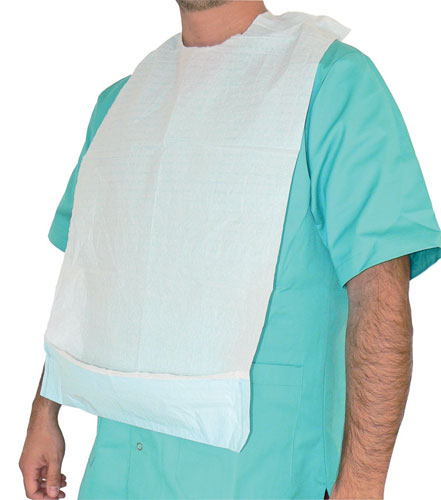 Babero desechable con revestimiento adhesivo, absorbente y resistente al agua.