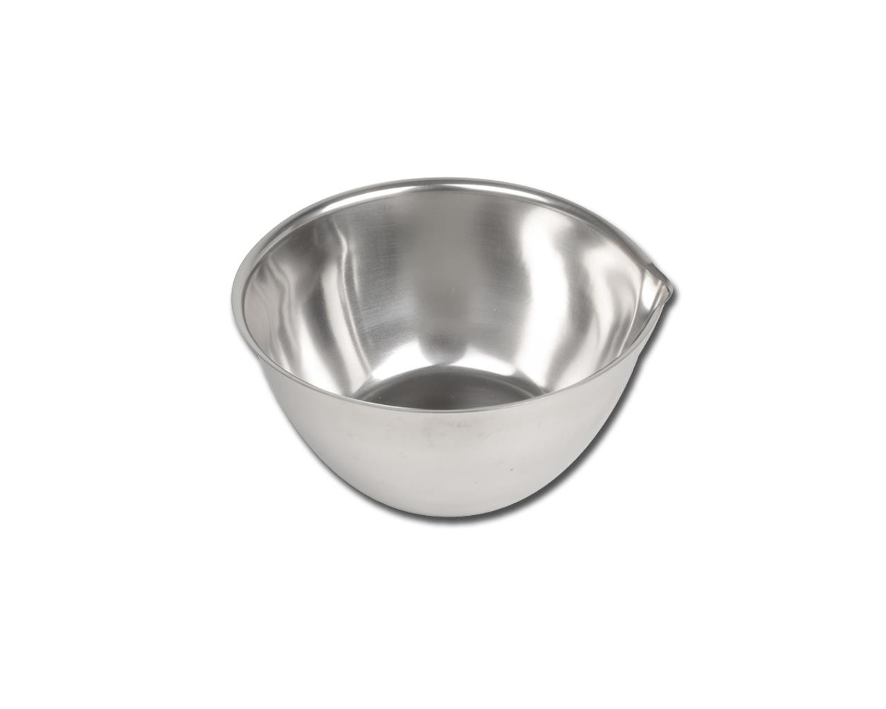 Vasija de acero inoxidable con fondo plano y pico.