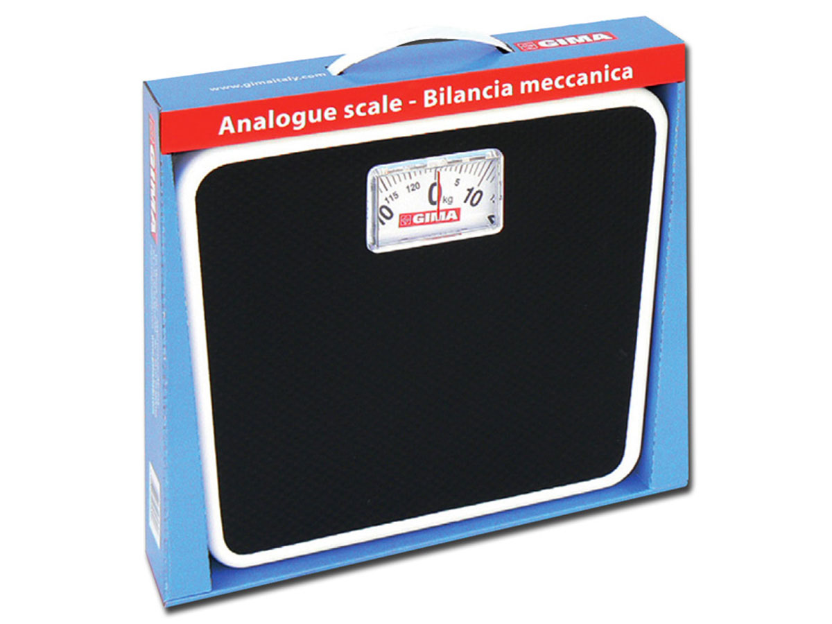Báscula de baño analógica con parte de apoyo antideslizante.