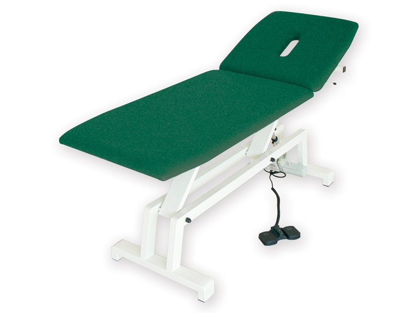 Camillas médica de reconocimiento y tratamientos robustas y estables. Altura regulable a través de un pedal eléctrico. Sección piernas fija y cabezal regulable manualmente con un orificio nasofaríngeo. Relleno ignífugo. Producción italiana.