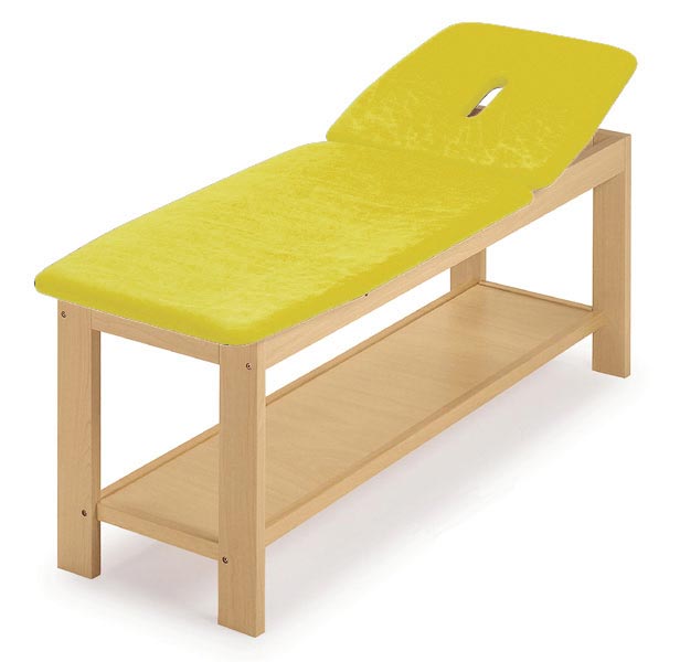 Camillas para reconocimientos y tratamientos dotadas de un amplio estante inferior, útil como superficie de apoyo, y de una sección móvil. El cabezal se caracteriza por un sistema de regulación manual y una sección fija, y además está dotado de una abertura nasofaríngea.