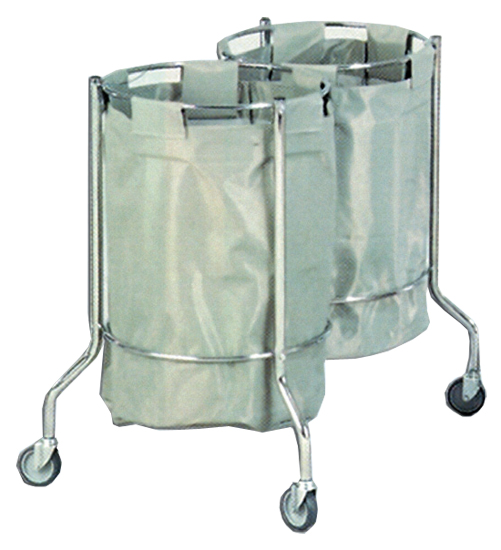 Carro para lavandería doble. Estructura cromada con 4 ruedas de Ø 80 mm. Bolsa extraíble.