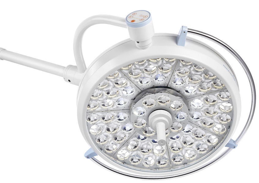 Gracias al principio de luz indirecta, la lámpara orientada en diferentes posiciones no deslumbra ni a los cirujanos ni a los asistentes.