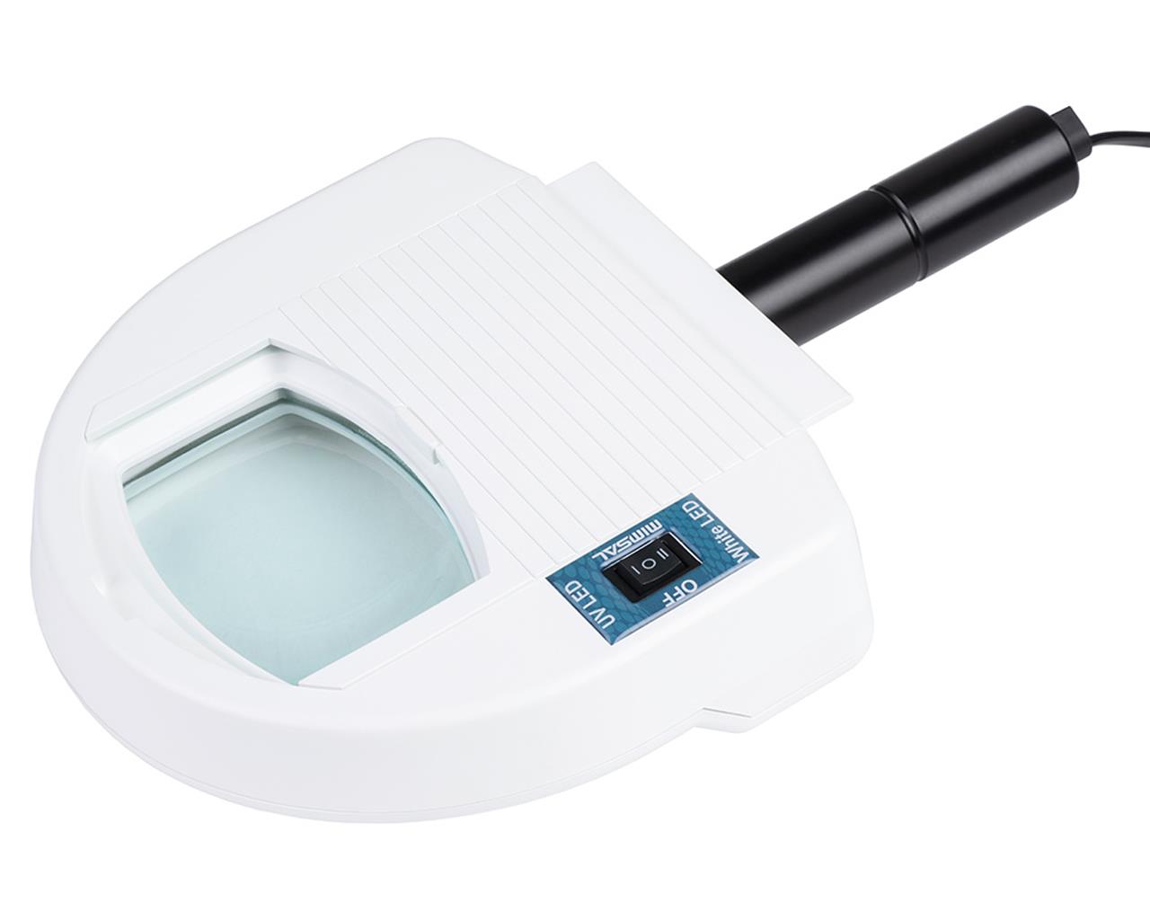 La tecnología led emite dos tipos de luz: luz Wood con longitud de onda de 365 nm (UV) y luz diurna (CRI >80%, 4.500 °K) con el interruptor mediante un interruptor.