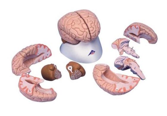 Los dos hemisferios de este cerebro muy detallado, se descomponen en: