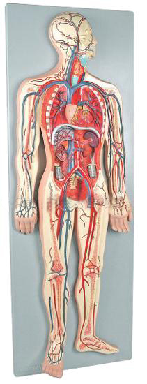 El modelo ofrece una visión general del sistema cardiovascular del ser humano. Incluye el corazón (2 piezas), los pulmones, el hígado, el bazo, los riñones y las conexiones pertinentes con los conductos pulmonares y del sistema circulatorio.