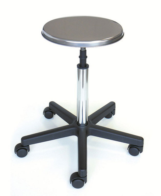 Taburete con ruedas de altura regulable (51-63 cm) fabricado en acero inoxidable AISI 304.