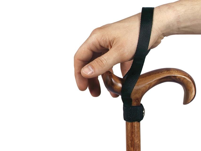 Correa de seguridad para bastones de paseo. Se ajusta a bastones de diámetros diferentes, y asegura al usuario un mejor agarre.