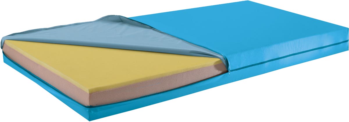 Colchón con base en espuma de poliuretano y parte superior viscoelástica de alta densidad. Densidad: 35 kg/m3 (base), 60 kg/m3 (parte superior). Indeformable, antibacteriano, antifúngico y puede lavarse en autoclave.
